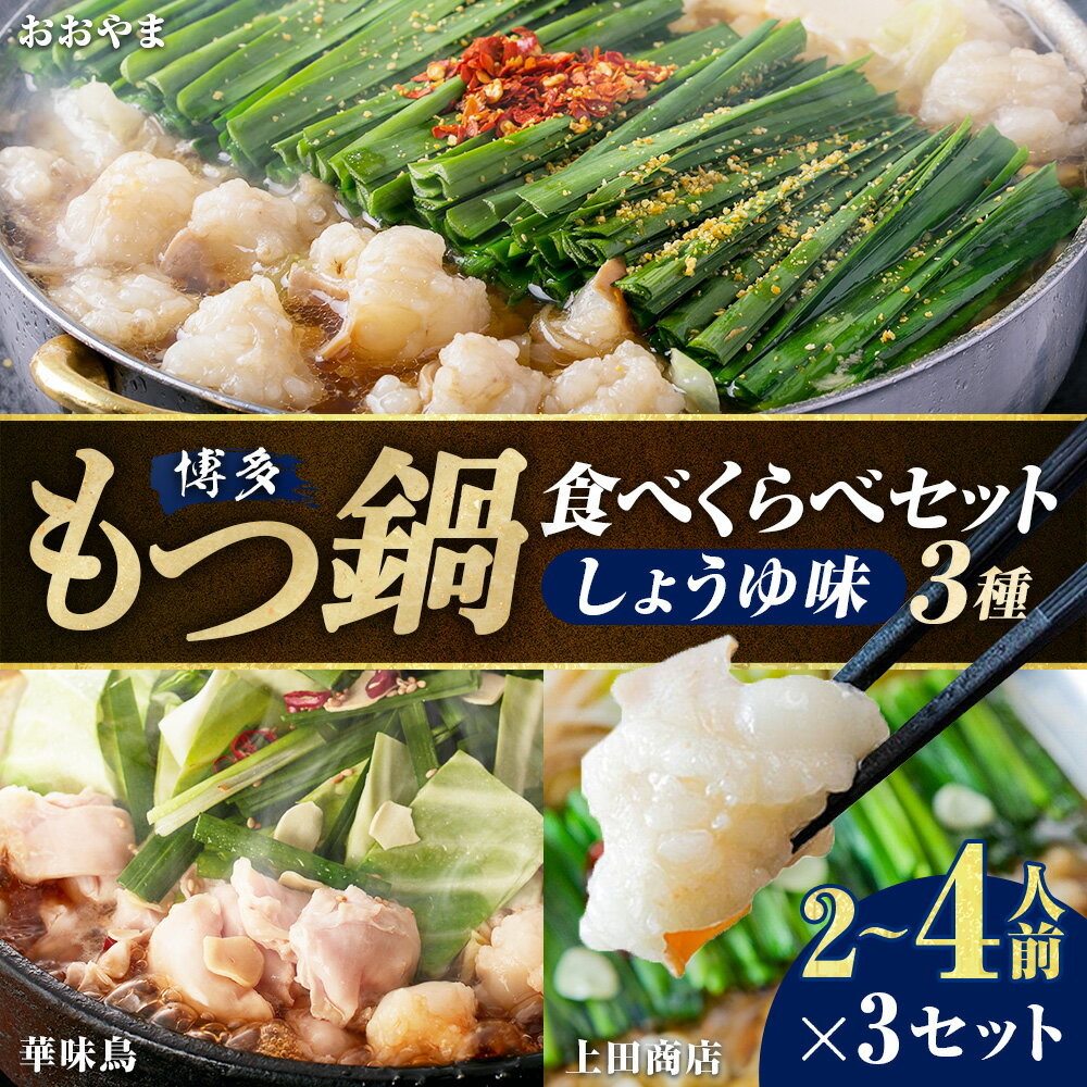 【ふるさと納税】博多もつ鍋食べくらべセット 3種(しょうゆ味/2~4人前)【おおやま・上田商店・華味鳥】 もつ鍋 モツ鍋 牛もつ 牛小腸 ちゃんぽん麵 鶏はらみ 華つくね 醬油スープ 牛肉 お肉 惣菜 鍋料理 麺類 チャンポン麵 詰め合わせ 冷凍 福岡県 糸田町 送料無料
