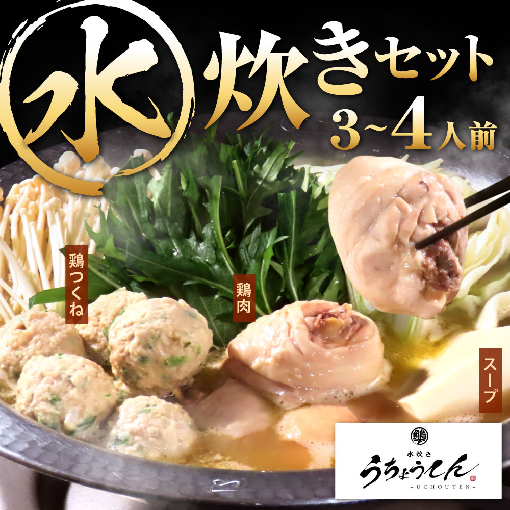 - 【ふるさと納税】うちょうてん 水炊きセット 3~4人前 水炊きスープ・鶏肉・鶏つくね・特製ポン酢 福岡県産鶏 鶏肉 お肉 つくね 骨付き ぽん酢 惣菜 鍋料理 お鍋 冷凍 国産 福岡県 太宰府市 送料無料
