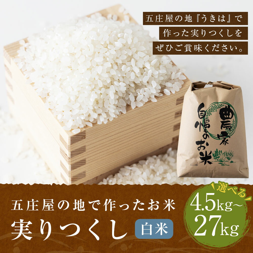 【ふるさと納税】<選べる内容量>五庄屋の地で作ったお米 実りつくし 白米 4.5kg / 9kg / 27kg お米 こめ コメ 精米 単一原料米 ごはん ご飯 福岡県産 国産 福岡県 うきは市 送料無料 【2026年1月下旬発送開始】
