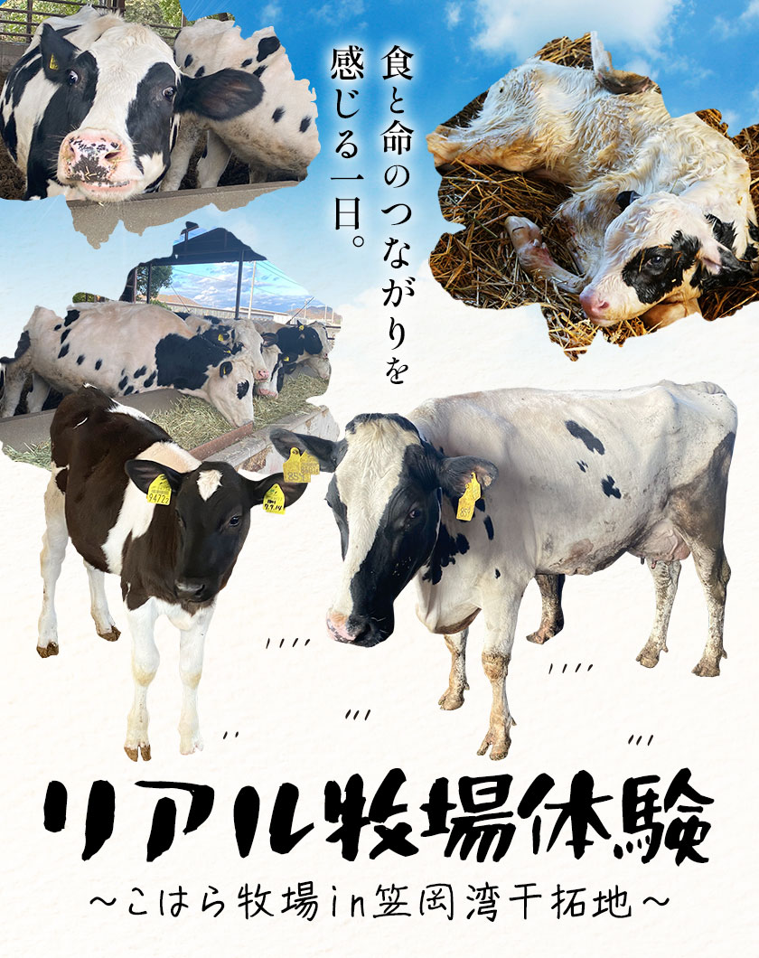 - 【ふるさと納税】体験 牧場 食と命のつながりを感じるリアル牧場体験 ~ こはら牧場 in 笠岡湾干拓地 ~ 《30日以内に出荷予定(土日祝を除く)》株式会社こはら 岡山県 笠岡市 牛 乳牛 酪農 学習
