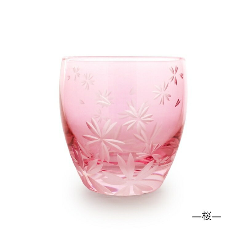 カガミクリスタルのロックグラス〈桜流〉赤T753-2996-CAU | グラス キレイ 上品 お祝い プレゼント 記念日 ギフト ご褒美 オリジナル 日本土産 クリスタルガラス 江戸切子 グラス コップ 伝統 日本製 プレゼント 贈り物 卒業祝い 就職祝い 記念品 贈答品 父の日 母の日 茨城県 龍ケ崎市