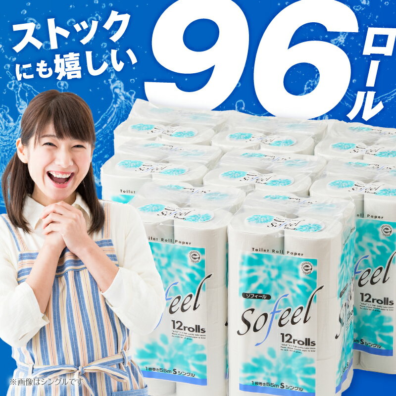 - 【ふるさと納税】 トイレットペーパー ソフィール 選べる厚さ シングル/ダブル 96ロール(12R×8P) 肌触り ふっくら やわらか ソフト リサイクルパルプ100% 古紙 地球に優しい エコ マイクロエンボス加工 無香料 [sf115-001] [sf115-002]