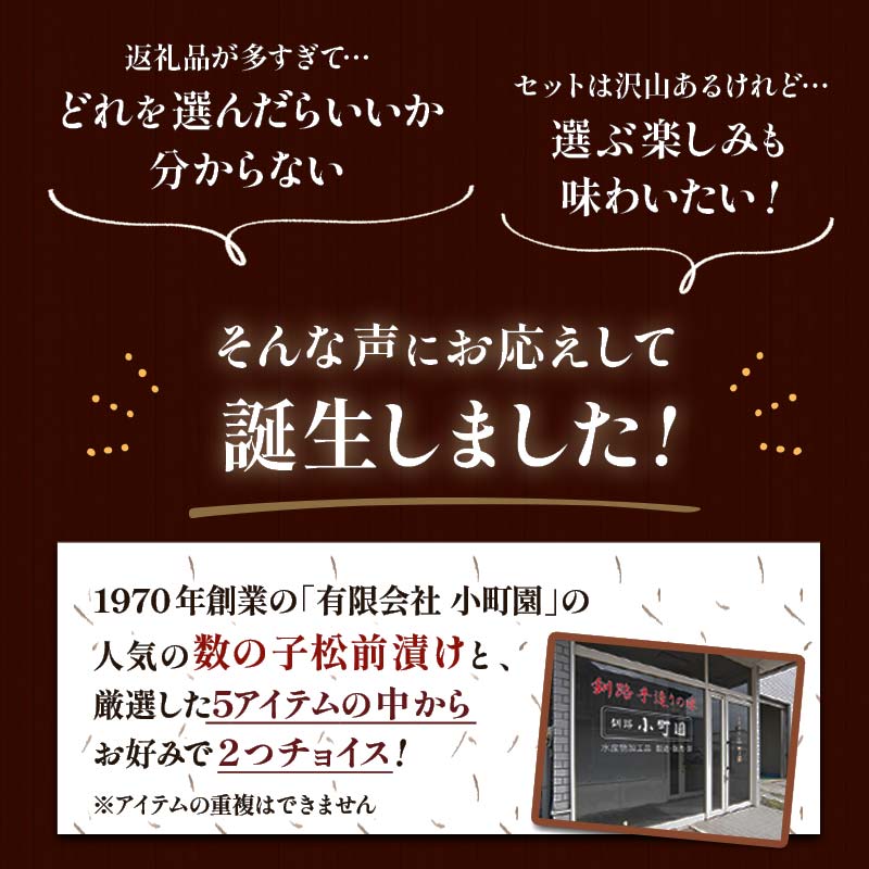 - 【ふるさと納税】 小町園の選んでおいしいセレクトBOX【ごはんのおとも編】 松前漬け 紅鮭 ほたて ツブ貝 つぶ アヒージョ ご飯のお供 おかず 選べる 釧路 F4F-9170var