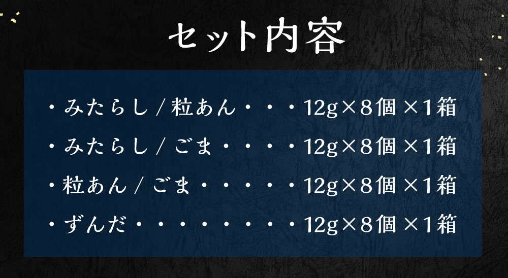 - 【ふるさと納税】もち菓子廉「ちぎり餅4箱セット」 計384g(96g(12g×8個)×4箱) ちぎり餅 みたらし 粒あん ごま ずんだ 和菓子 お菓子 スイーツ デザート おやつ 餅菓子 お餅 はくちょうもち あんこ 餡子 冷凍 北海道産 国産 北海道 深川市 送料無料