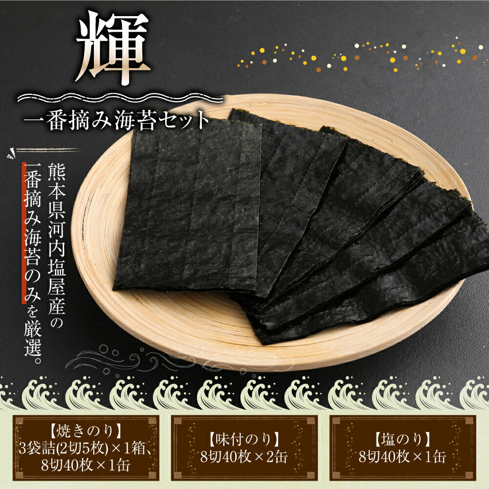 - 【ふるさと納税】 輝 50KN 3種 焼のり 味付のり 塩のり 詰め合わせ 有明海産 一番摘み 贈り物 贈答品 熊本 九州 送料無料