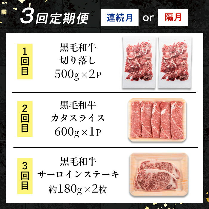 - 【ふるさと納税】<定期便・計3回(連続月or隔月選べる!)> 鹿児島県産 黒毛和牛人気部位 定期便 (総計1.96kg) 国産 鹿児島県産 牛肉 黒毛和牛 カタ ウデ スライス サーロイン ステーキ 切り落し 赤身 焼肉 お肉 肉 個包装 小分け 3回 バラエティ 冷凍配送 【スターゼン】