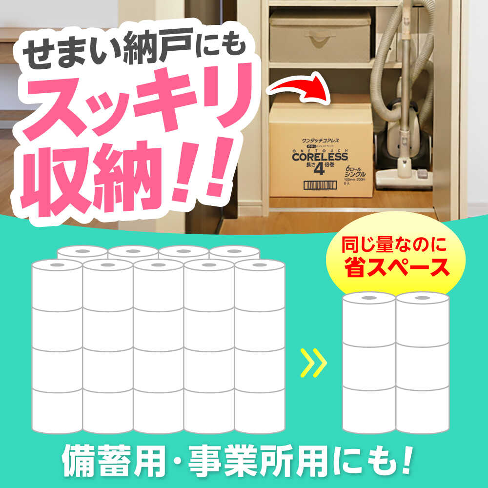 【ふるさと納税】トイレットペーパー シングル 4倍巻 長さ200m 36ロール(6ロール×6パック) ワンタッチ コアレス《豊前市》【大分製紙株式会社】[VAA167] 備蓄 防災 まとめ買い 日用品 消耗品 常備品 生活用品 大容量 トイレ 4倍巻き トイレットペーパー