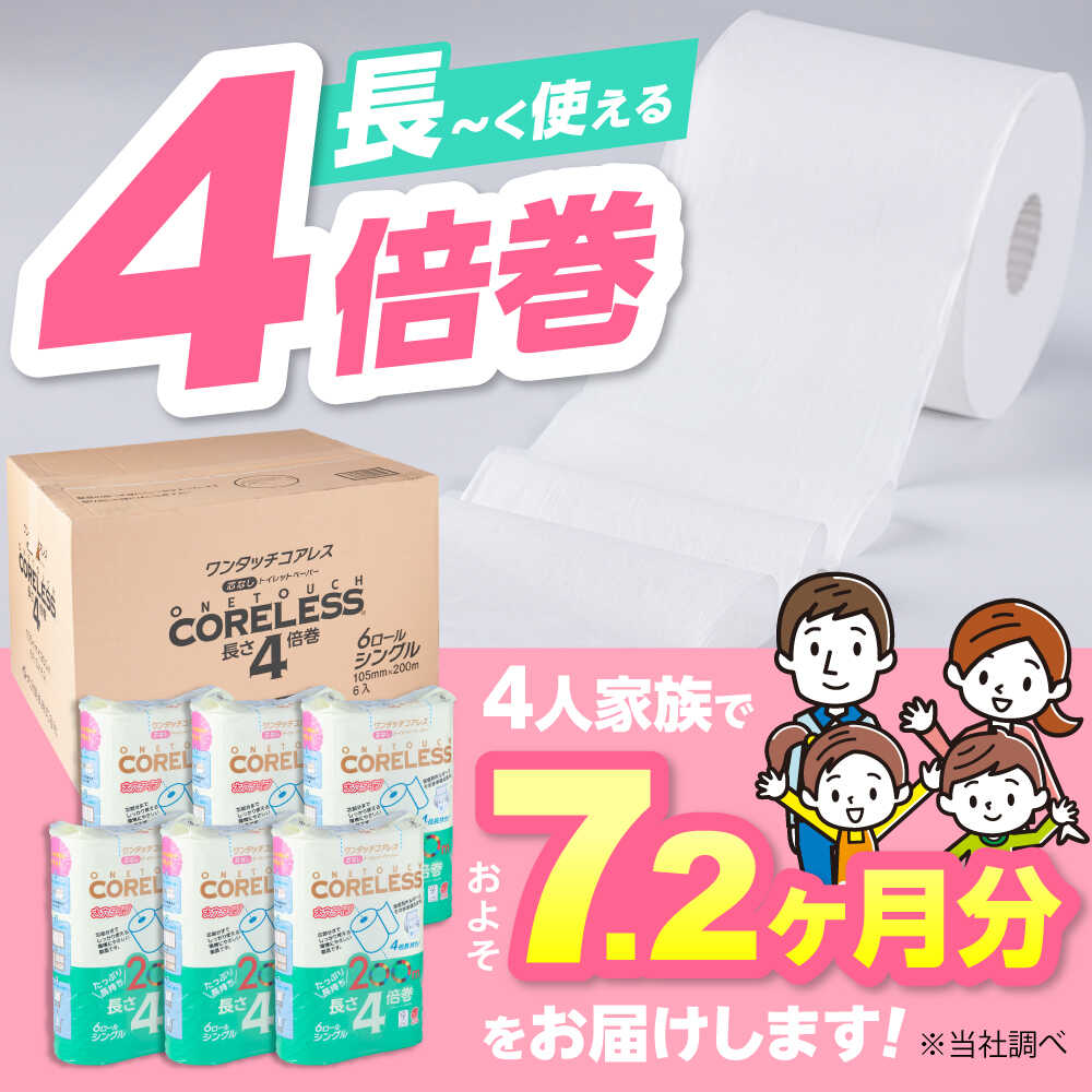 - 【ふるさと納税】トイレットペーパー シングル 4倍巻 長さ200m 36ロール(6ロール×6パック) ワンタッチ コアレス《豊前市》【大分製紙株式会社】[VAA167] 備蓄 防災 まとめ買い 日用品 消耗品 常備品 生活用品 大容量 トイレ 4倍巻き トイレットペーパー