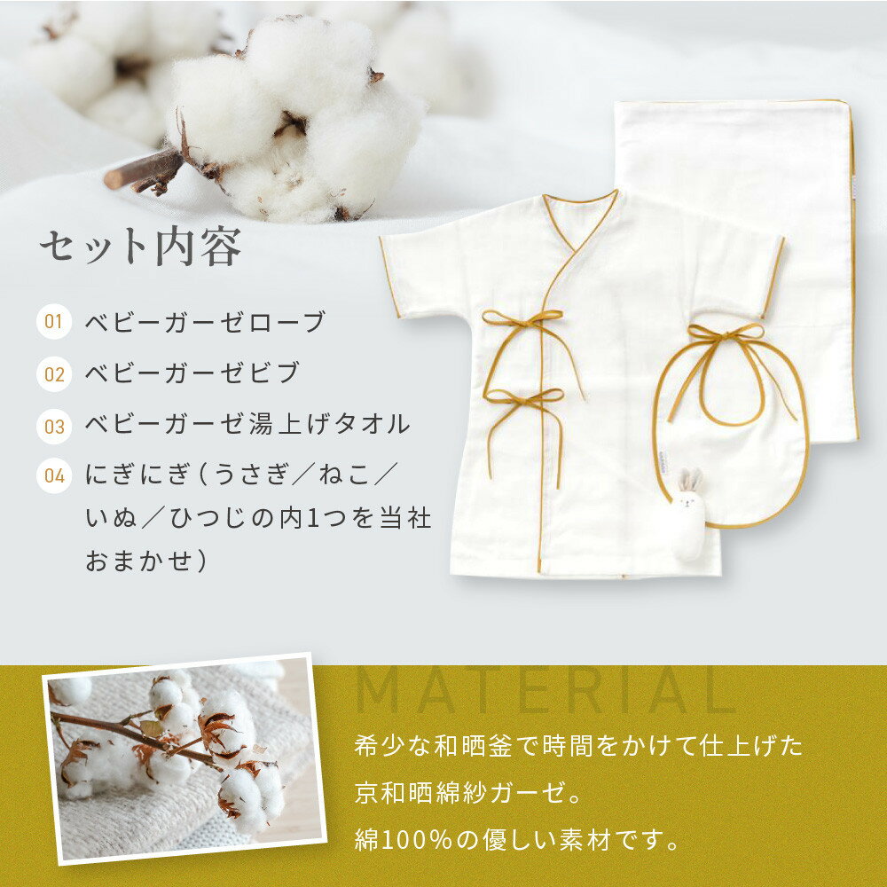 【ふるさと納税】【大東寝具】京和晒綿紗 新生児セット ローブ/ビブ/湯上げタオル/にぎにぎ ベビーギフト | だいとうしんぐ 京都 寝具 老舗 ガーゼ 人気 おすすめ 贈りもの お取り寄せ 通販 送料無料