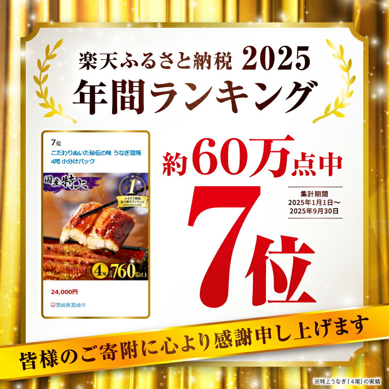 - 【数量限定】国産うなぎ蒲焼4尾 計800g以上 鰻蒲焼ウナギ蒲焼用たれさんしょうのセット