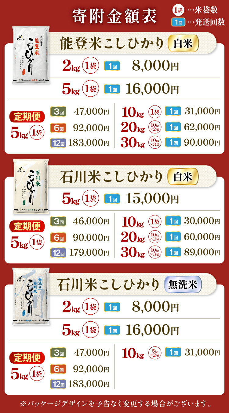 - 定期便 米 能登米 こしひかり 5kg×6回 総計30kg 精米 白米 コシヒカリ お米 / 中橋商事 / 石川県 宝達志水町