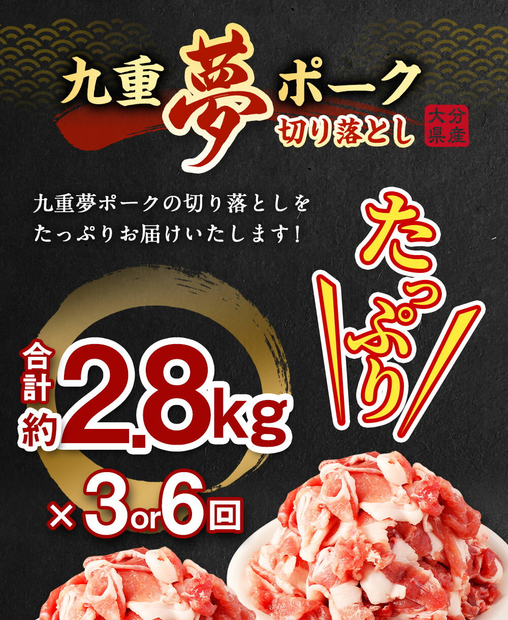 【ふるさと納税】【選べる定期便回数】九重夢 ポーク お米豚 切り落とし 1回あたり 約2.8kg (約350g×8パック) 定期便 3回 (合計約8.4kg) / 6回 (合計約16.8kg) SPF豚 豚肉 小分け 真空パック お肉 切落し 国産 九州産 大分県産 九重町産 冷凍 送料無料