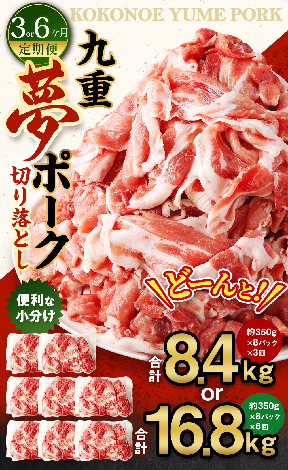 - 【ふるさと納税】【選べる定期便回数】九重夢 ポーク お米豚 切り落とし 1回あたり 約2.8kg (約350g×8パック) 定期便 3回 (合計約8.4kg) / 6回 (合計約16.8kg) SPF豚 豚肉 小分け 真空パック お肉 切落し 国産 九州産 大分県産 九重町産 冷凍 送料無料