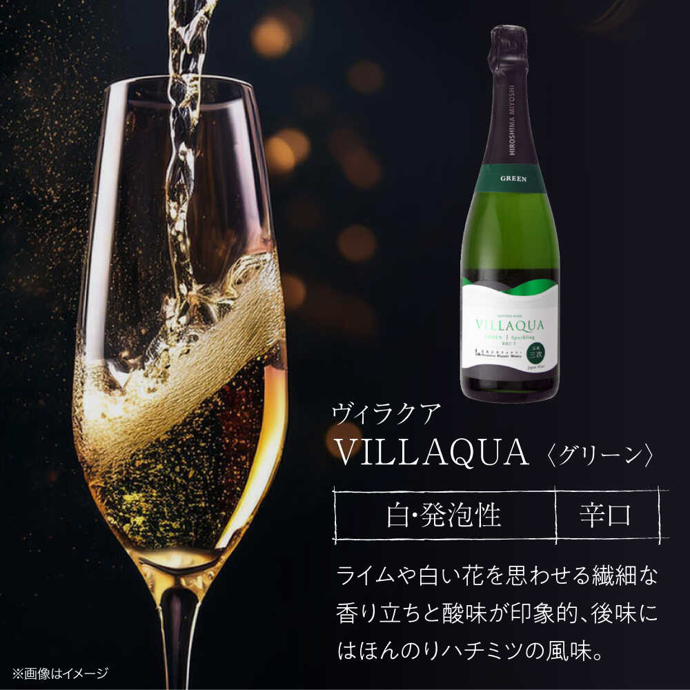 【ふるさと納税】【スピード発送/選べる容量】VILLAQUA -グリーン- 750ml 白ワイン 白 ワイン スパークリングワイン スパークリング 発泡性 辛口 ギフト プレゼント お祝い 広島 三次 酒 お酒 地酒 洋酒 フルーツ フルーティ 三次市 / 広島三次ワイナリー[APAZ151]