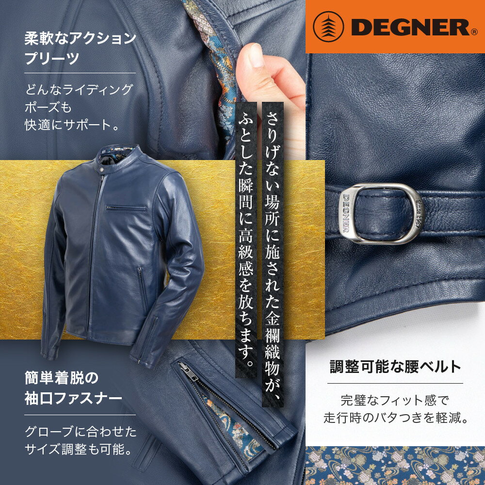 - 【ふるさと納税】【デグナー】クラシック×花山コラボジャケット 21SK-14K ネイビー 鉄流水雪輪[ 京都 バイクギア ブランド レザー ジャケット 人気 おすすめ 革 牛革 ツーリング ライダー バイカー バイク メーカー ギア パーツ 送料無料 ] | DEGNER