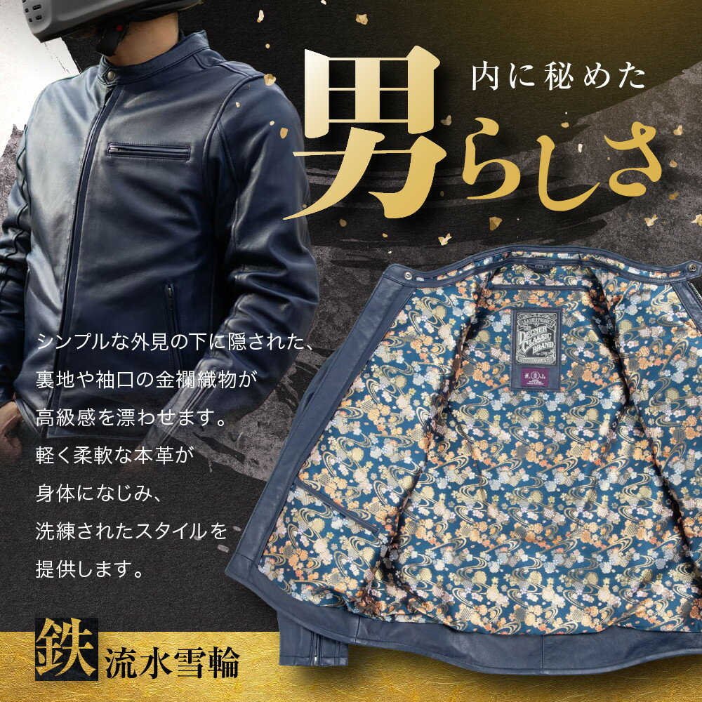 【ふるさと納税】【デグナー】クラシック×花山コラボジャケット 21SK-14K ネイビー 鉄流水雪輪[ 京都 バイクギア ブランド レザー ジャケット 人気 おすすめ 革 牛革 ツーリング ライダー バイカー バイク メーカー ギア パーツ 送料無料 ] | DEGNER