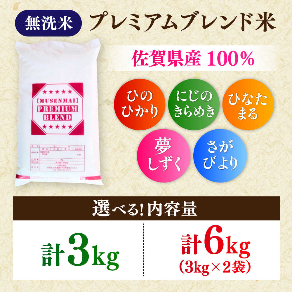 【ふるさと納税】【選べる内容量】プレミアムブレンド無洗米 3kg-6kg / 無洗 国産 九州 / 佐賀県 / 大塚米穀店 [41ANAD001]