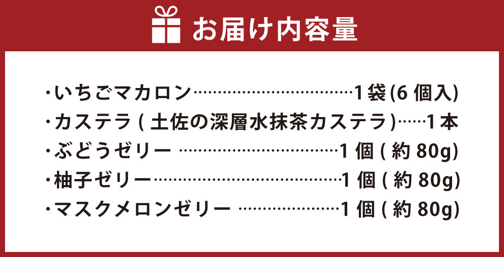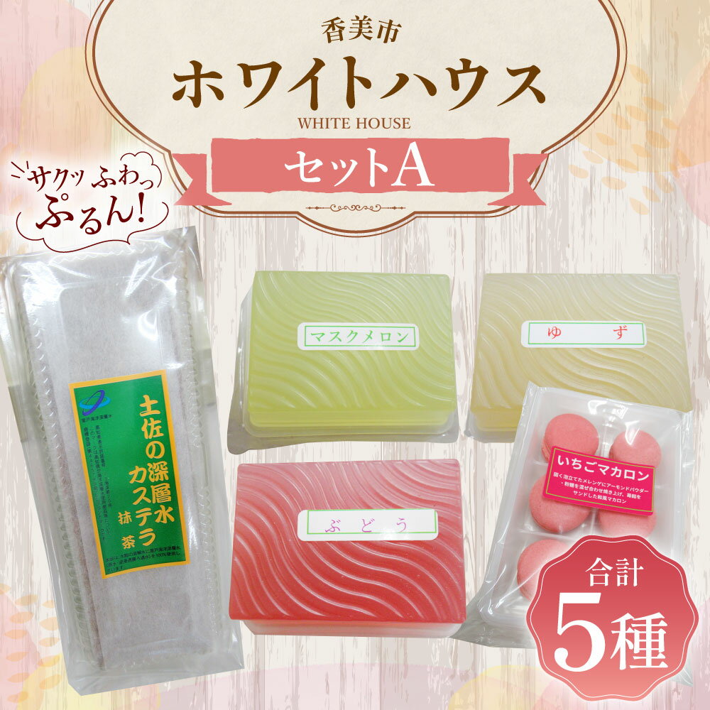 【ふるさと納税】 ホワイトハウス(セットA) いちごマカロン×1袋(6個入) カステラ(土佐の深層水抹茶カステラ)×1本 ぶどうゼリー×1個 柚子ゼリー×1個 マスクメロンゼリー×1個 マカロン ゼリー デザート スイーツ お菓子 菓子 洋菓子 おやつ 高知県 香美市 送料無料