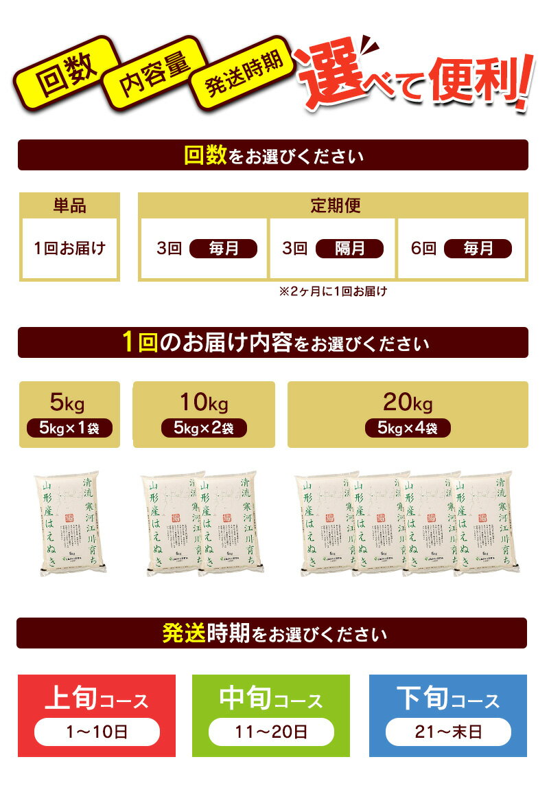 - 【ふるさと納税】【1回から選べる】 令和7年産 はえぬき 5kg 〜 60kg 山形県産 2025年産 5kg 10kg 20kg 定期便 3回定期便 6回定期便 白米 お米 山形産 ブランド米 5キロ 10キロ 15キロ 20キロ 30キロ 60キロ 2袋 4袋 3回 6回 3か月 6か月 6か月小分け 発送時期 配送時期