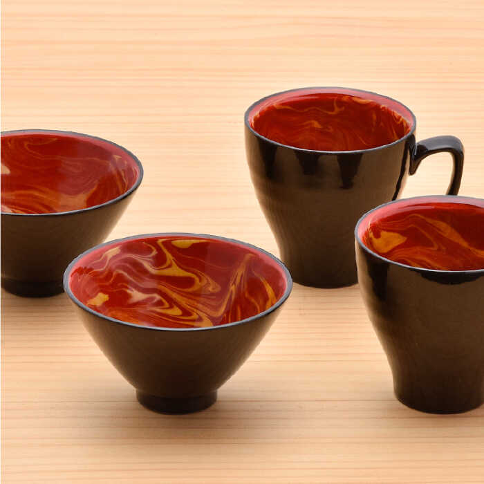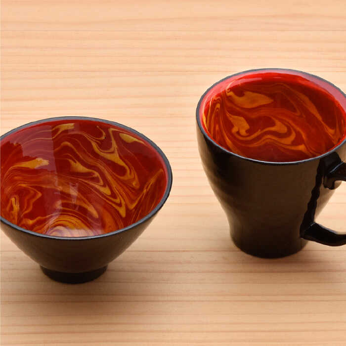 - 【ふるさと納税】【感謝祭対象】【波佐見焼】レッドマーブル マグカップ2個 飯碗2個セット 茶碗 丼 スープマグ 食器 皿 【舘山堂】 [RC23]