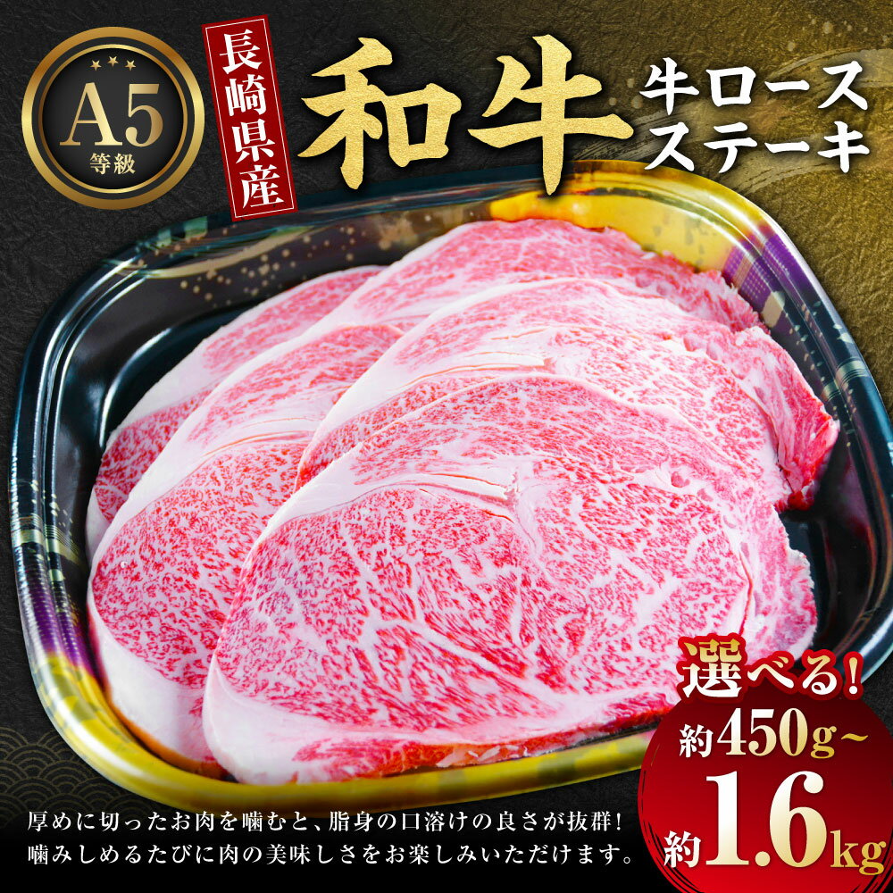 【ふるさと納税】長崎県産和牛A5等級 牛ロースステーキ 選べる内容量 ( 450g / 600g / 800g / 1kg / 1.2kg / 1.4kg / 1.6kg ) | 牛肉 お肉 肉 牛 ロース ステーキ BBQ 焼肉 焼き肉 国産牛 九州 冷凍 長崎県 長崎市 送料無料