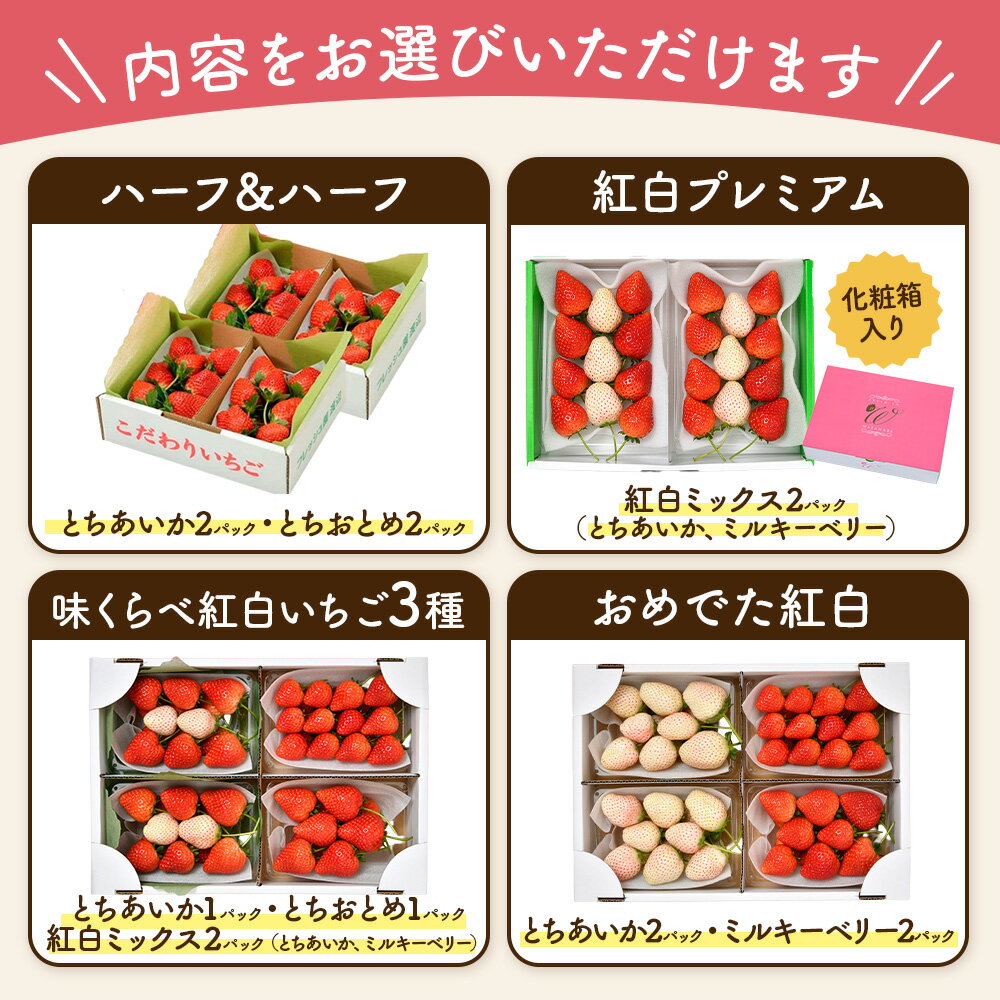 【ふるさと納税】【先行予約】【選べる品種・内容量・発送時期】食べ比べセット(とちおとめ・とちあいか・ミルキーベリー)| いちご 果物 フルーツ デザート スイーツ 苺 イチゴ くだもの 朝取り 新鮮 美味しい 甘い 先行受付