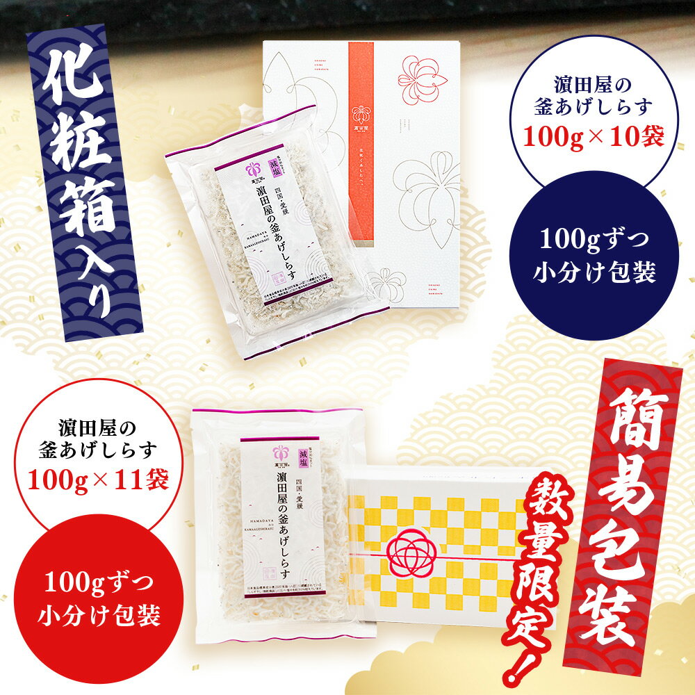 - 【ふるさと納税】<老舗網元 濱田屋の釜あげしらす 計1kg(100g×10袋)/計1.1kg(100g×11袋)> 数量限定 化粧箱 簡易包装 選べる 釜揚げ シラス じゃこ 海鮮 海産物 丼 小魚 乾物 小分け カルシウム 国産 マルヨシ水産 愛媛県 西予市【冷凍】『1か月以内に順次出荷予定』