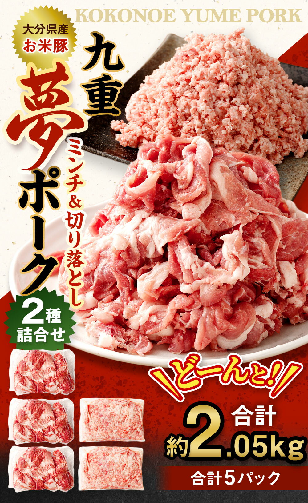 【ふるさと納税】九重夢 ポーク ミンチ 切り落とし セット 食べ比べ 合計2.05kg ミンチ 500g×2パック / 切り落とし 約1.05kg 約350g×3パック 九重夢ポーク SPF 豚肉 小分け 真空パック お肉 豚ミンチ ひき肉 挽肉 挽き肉 国産 九州産 大分県産 九重町産 冷凍 送料無料