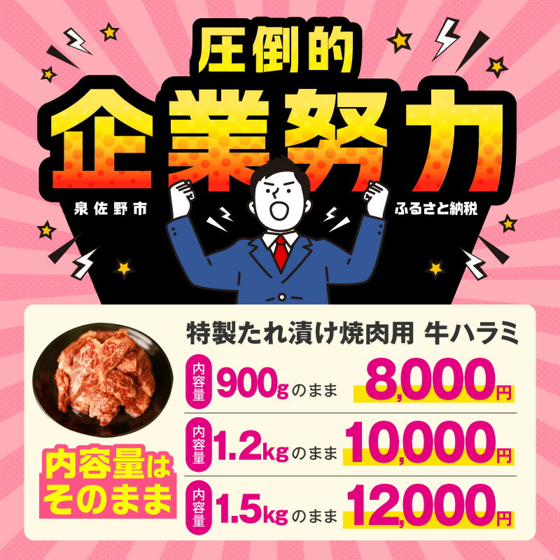 【ふるさと納税】牛肉 ハラミ 600g / 900g / 1.2kg / 1.5kg / 2.4kg 【丸善特製ダレ】 【氷温熟成×極味付け】 氷温熟成牛 熟成肉 肉 焼肉 ふるさと納税オリジナル 限定 発送月 大阪府 泉佐野市 送料無料 肉の泉佐野 圧倒的企業努力