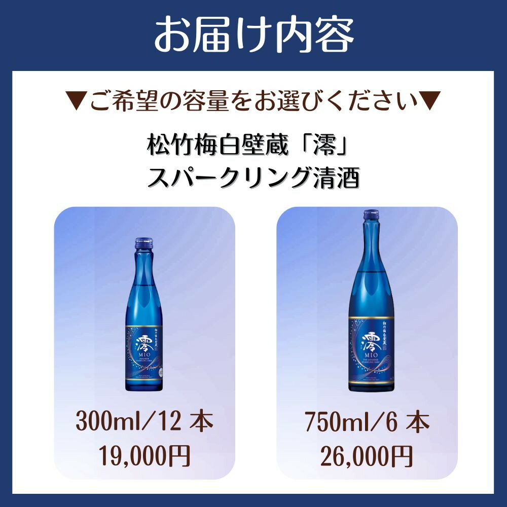 【ふるさと納税】【タカラ】松竹梅白壁蔵「澪」スパークリング清酒 300ml×12本/750ml×6本|京都 宝酒造 発泡酒 日本酒 レビュー高評価 人気セット[スパークリング アルコール分5% フルーティー 飲みやすい おすすめ お酒 通販 送料無料]