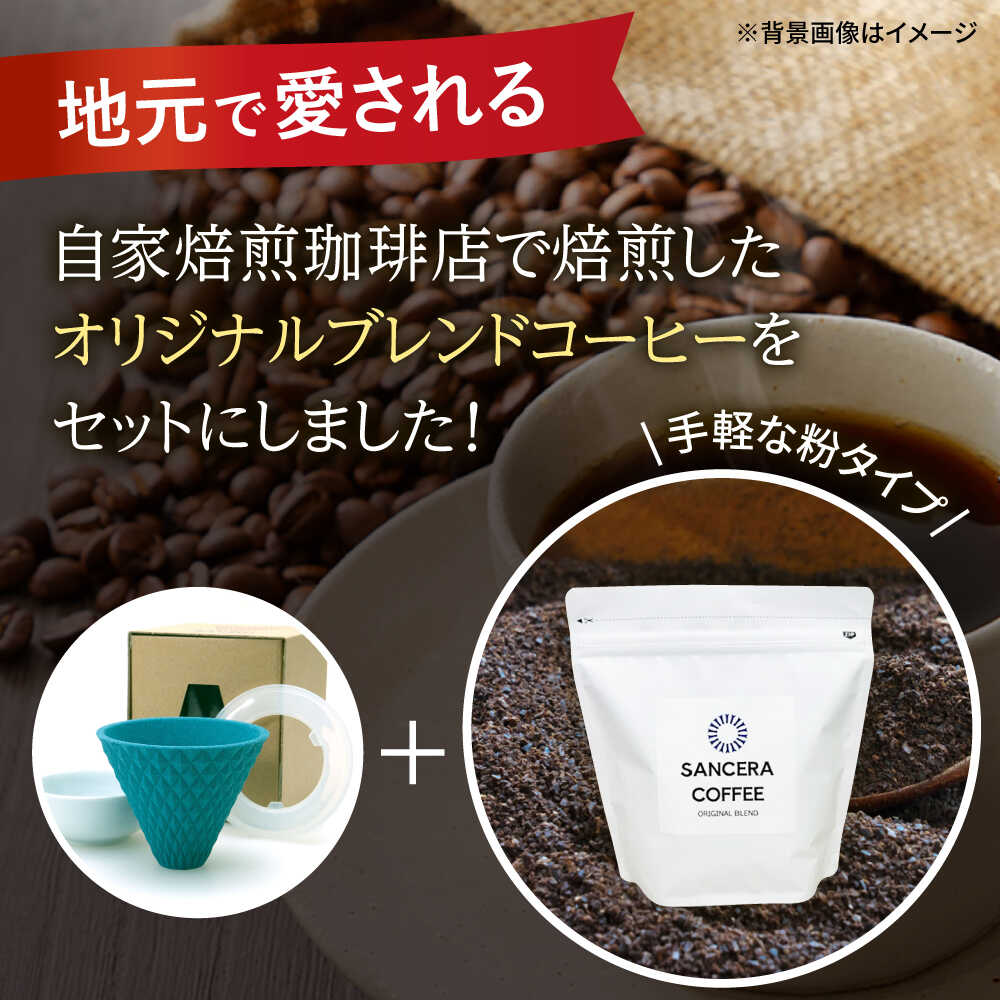 【ふるさと納税】【感謝祭対象】【波佐見焼】ekubo セラミックコーヒーフィルター Peacock green オリジナルブレンドコーヒー豆セット(粉タイプ)200g 【燦セラ】[DF44]