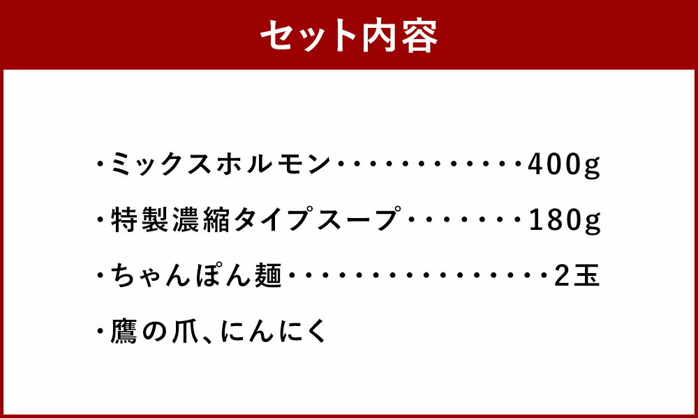 【ふるさと納税】堀ちゃん牧場 博多和牛もつ鍋セット ミックスホルモン (400g) 特製濃縮タイプスープ (180g) 計580g ちゃんぽん麺 2玉 鷹の爪 にんにく 付 もつ 鍋 ちゃんぽん 麺 塩 スープ 冷凍 福岡県 大任町 送料無料