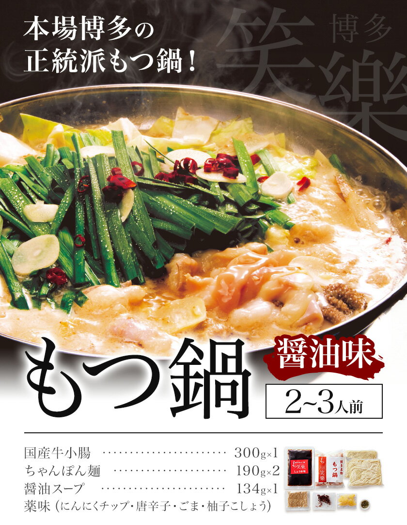 - 【ふるさと納税】もつ鍋 醤油味 セット 薬味付き ちゃんぽん麵 博多笑樂 2~3人前 地域商社ふるさぽ《90日以内に出荷予定(土日祝除く)》福岡県 鞍手郡 小竹町 もつ 鍋 牛モツ 醤油