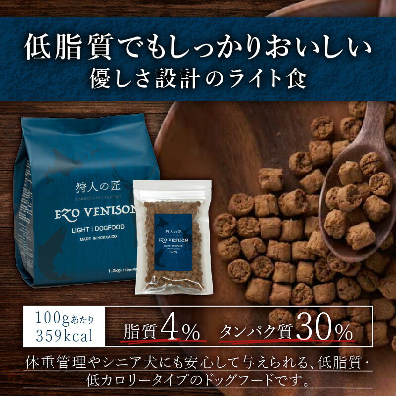- 【ふるさと納税】<容量選べる> 狩人の匠 エゾベニソン ライト 150g or 1.2kg ドッグフード ペットフード ペット用品 犬 愛犬 犬のおやつ 個包装 健康 低温調理 無添加 グレインフリー North Innovation 北海道 苫小牧市 おすすめ ランキング プレゼント ギフト
