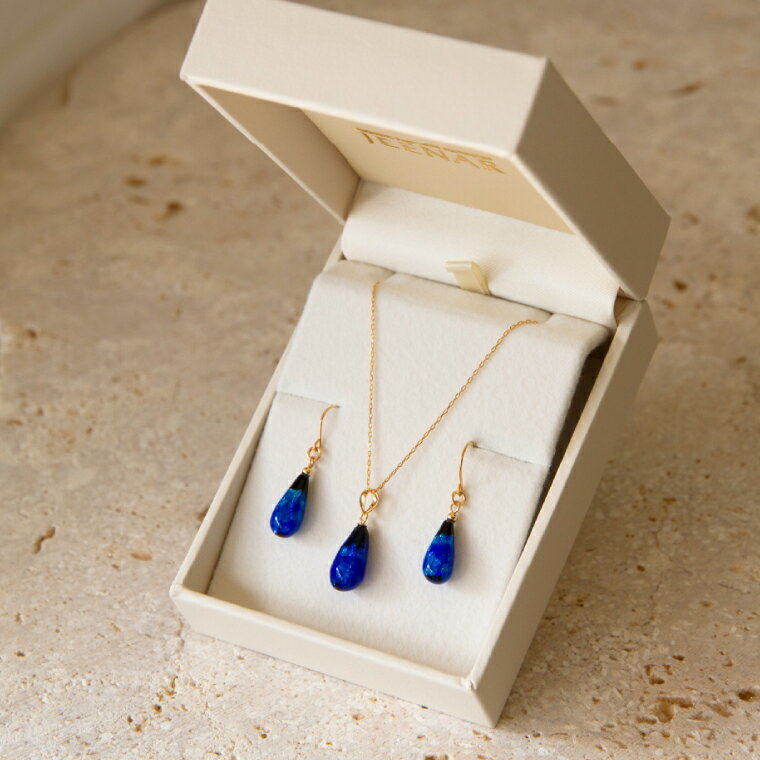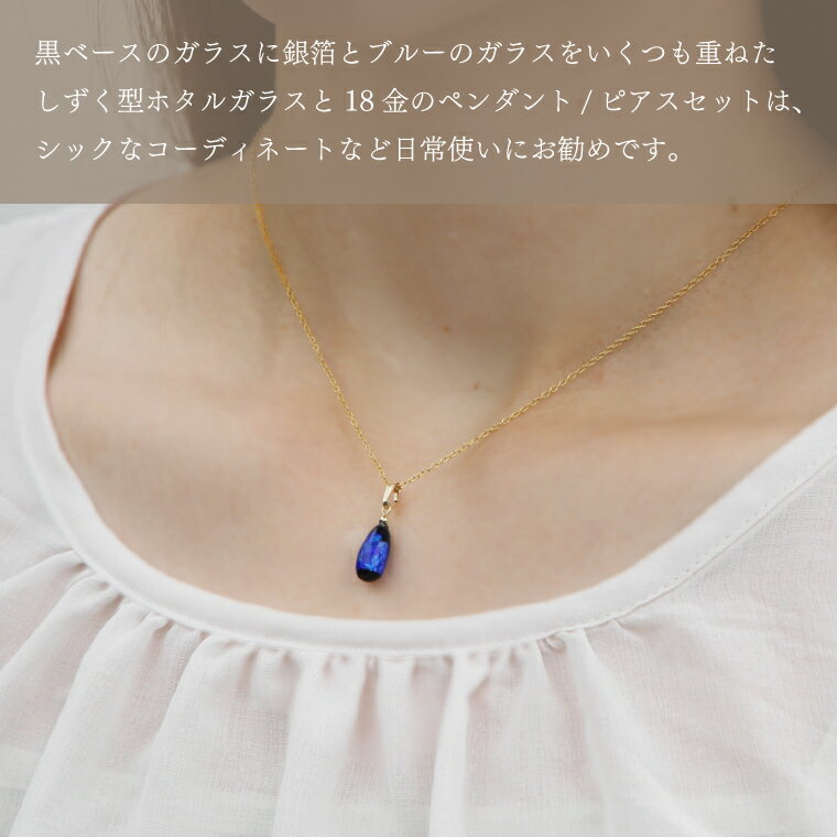 【ふるさと納税】アクセサリー ピアス ペンダント しずくホタルガラス(小)K18セット|ピアス アクセサリー ペンダント ネックレス ガラス K18 セット ホタルガラス 贈り物 ギフト 沖縄 沖縄県 豊見城市(AT001)