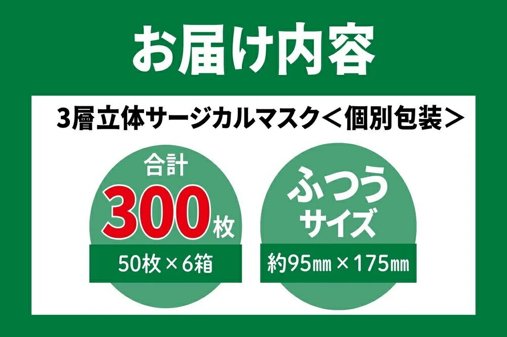 【ふるさと納税】<50枚入り×6箱(個別包装)>3層立体サージカルマスク 個別包装 ふつう サイズ(医療用 使い捨て 不織布 日本製 マスク 普通 マスク プリーツ 携帯 個包装 花粉症)【メディファム めぐみ調剤薬局】