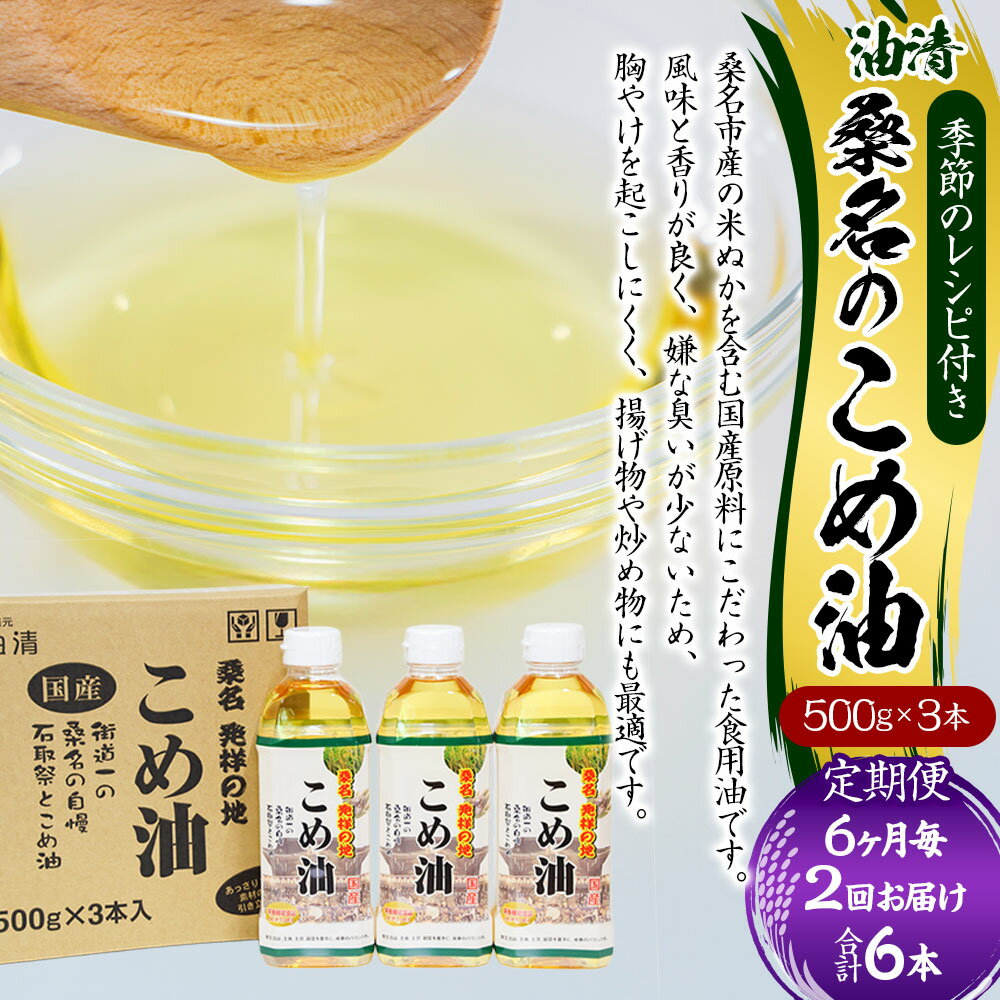 【ふるさと納税】【6ヶ月毎定期便2回】油清 桑名のこめ油 1回あたり計1.5kg(500g×3本入り) 桑名のこめ油季節のレシピ付き 米油 油 あぶら 米ぬか ビタミンE 食用油 調味料 揚げ物 炒め物 保健機能食品 健康 国産 三重県 桑名市 送料無料
