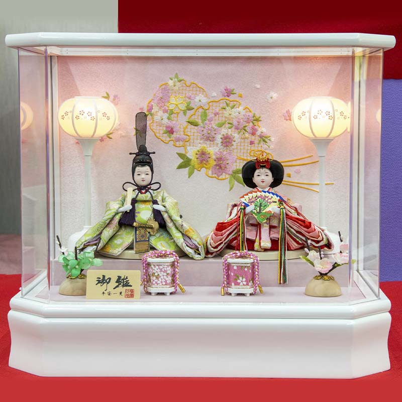 【ふるさと納税】【萌音】雛人形 柳 二人 アクリルケース 灯り付 パールホワイト
