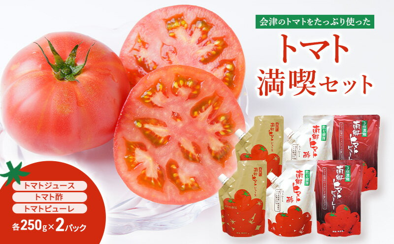 【ふるさと納税】只見特産のトマト満喫セット トマトジュース250g×2パック トマト酢250g×2パック トマトピューレ250g×2パック とまと ジュース 純玄米黒酢 蜂蜜 ブレンド 料理 煮込み料理 アレンジ ソース パスタ リゾット スープ 福島県 南会津 只見町