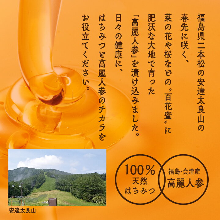 - 【ふるさと納税】 自家採蜜はちみつ 高麗人参入り 255g 490g 840g 選べる容量 ハチミツ 蜂蜜 自家採蜜 高麗人参 朝鮮人参 国産100% おたねにんじん 二本松養蜂場 滋養強壮 おすすめ お中元 お歳暮 ギフト 二本松市 ふくしま 福島県 送料無料 【あだたら高原いっぷく】