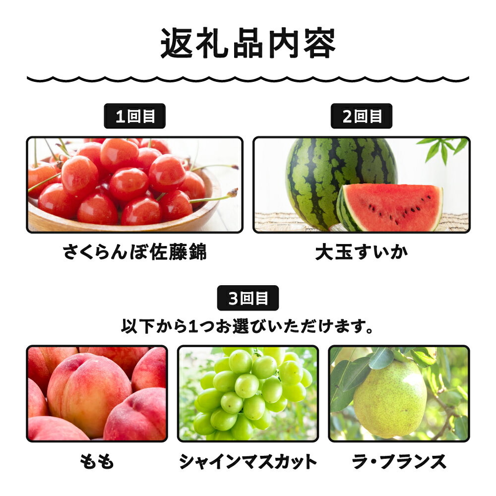 - 【ふるさと納税】【先行予約】選べる! フルーツ定期便 全3回 さくらんぼ 佐藤錦 大玉すいか もも 桃 シャインマスカット ラ・フランス 洋梨 2026年産 令和8年産 ja-ft3cx ※沖縄・離島への配送不可