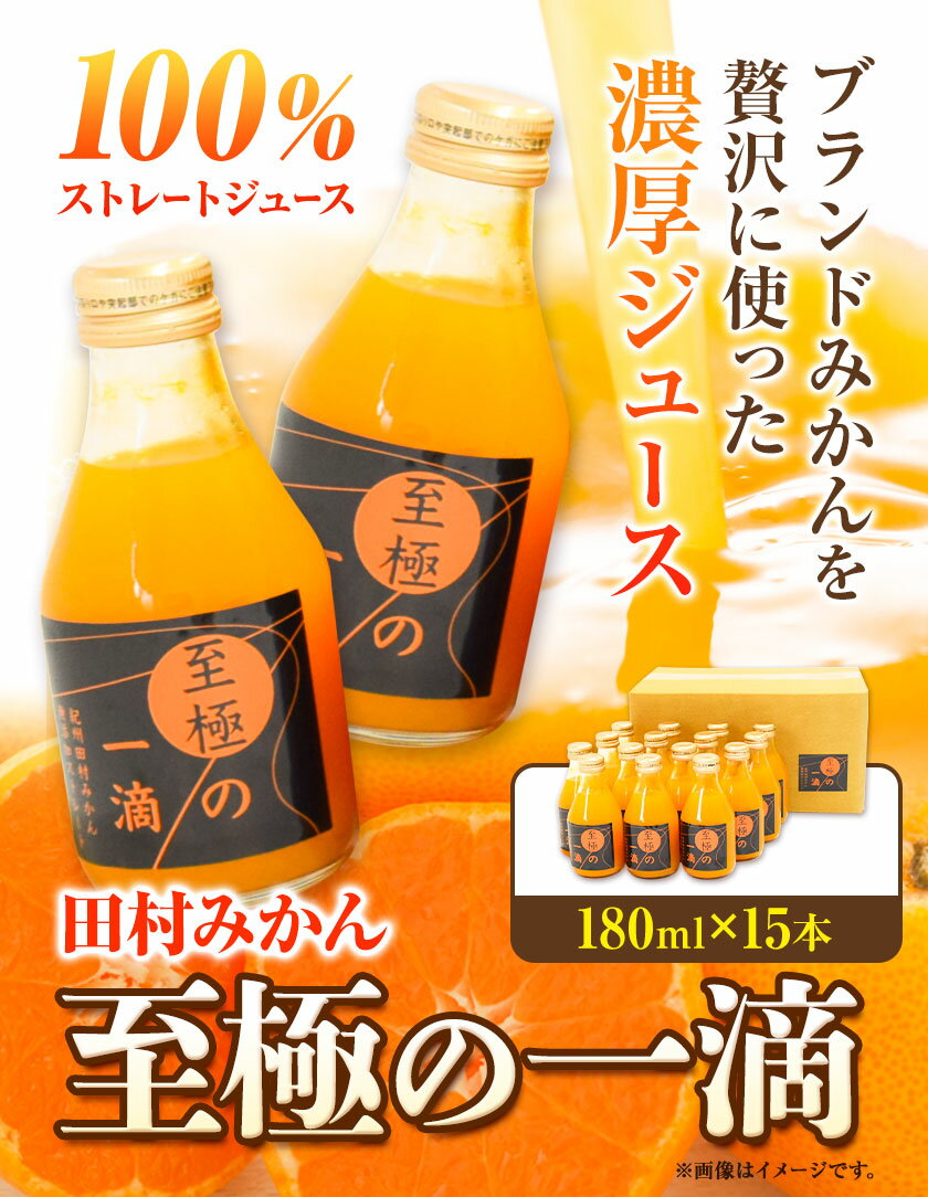 【ふるさと納税】田村みかん の 新鮮 100% ジュース「至極の一滴」 180ml×15本入り 厳選館 《30日以内に出荷予定(土日祝除く)》 和歌山県 日高町 オレンジジュース みかんジュース フルーツジュース 田村みかん 100%使用