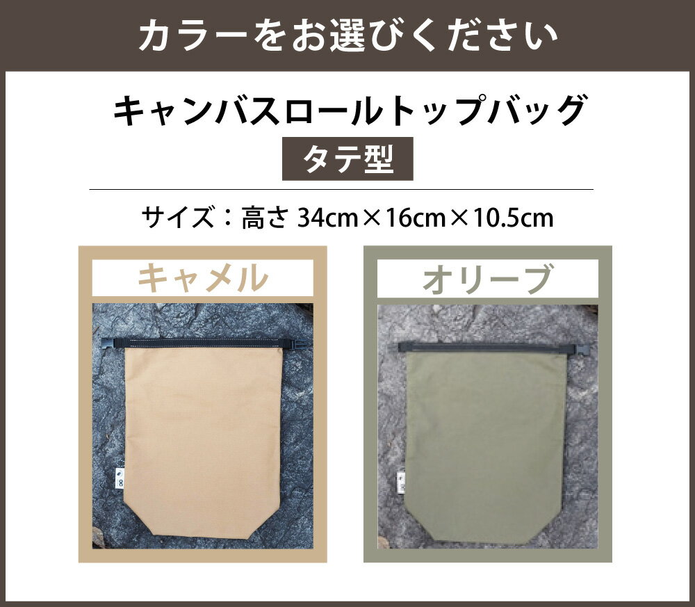 【ふるさと納税】キャンバスロールトップバッグ タテ型 <選べるカラー> キャメルカラー / オリーブカラー 天然素材 ハンドメイド キャンプ キャンプ道具 アウトドア お弁当入れ 化粧ポーチ キャンバス地 高知県 香美市 送料無料