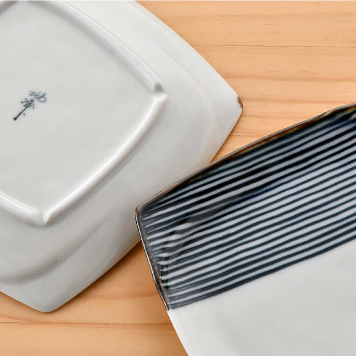【まるふくオリジナル】有田焼 22cm正角プレート Nami line ワンプレート 角プレート カフェプレート 盛皿 四角 A24-58
