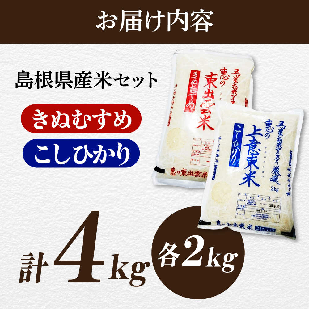 - 【ふるさと納税】米 五ツ星お米マイスター厳選 こだわり米毎日食べ比べ (上意東産コシヒカリ・東出雲産きぬむすめ)各2kg 島根県松江市/株式会社沼田米穀店[ALBU004]| 米 おこめ お米 ごはん コシヒカリ きぬむすめ ブランド米 食べ比べ 人気 おすすめ 島根 松江