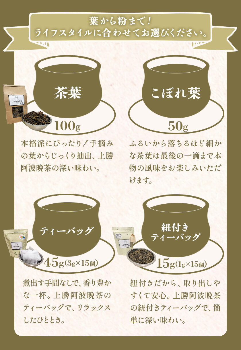 - 【ふるさと納税】上勝阿波晩茶 茶葉 粉 ティーバッグ 選べます! みつるファーム 《30日以内に出荷予定(土日祝除く)》徳島県 上勝町 飲み物 飲料 お茶 晩茶 上勝晩茶 阿波晩茶 乳酸菌 発酵茶 後発酵茶 阿波番茶 送料無料