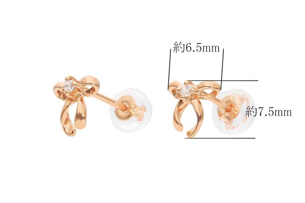 - K18PG リボンモチーフダイヤピアス mk-436 CR-12
