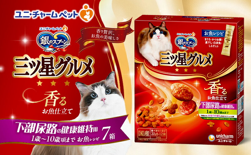 【ふるさと納税】銀のスプーン三ツ星グルメ 香るお魚仕立て下部尿路の健康維持用 1歳~10歳頃までのお魚レシピ 240g×7箱 ペットフード キャットフード 猫 ペット 小分け 個包装 ドライ ユニ・チャーム ペット