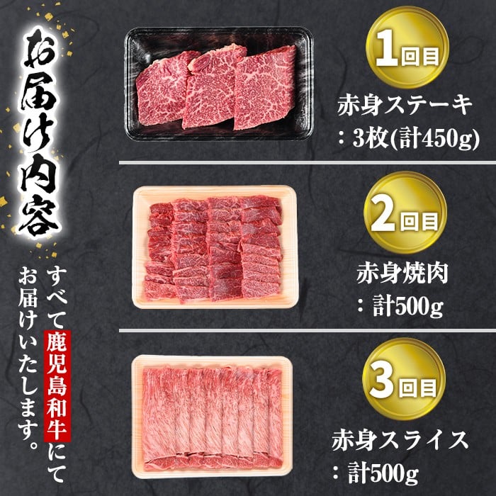 - <定期便・全3回>鹿児島和牛 赤身定期便(合計1.45kg) 和牛 焼肉 ステーキ【居食肉】T66