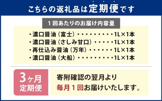 【3ヶ月定期便】 お醤油4種味比べセット / 調味料 醤油 しょうゆ おしょうゆ 濃口 こいくち 甘口 あまくち 料理 大分県 九重町